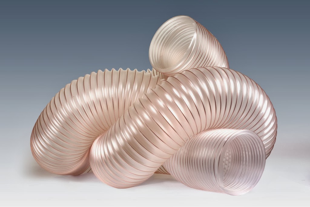Очень гибкий полиуретановый воздуховод для транспортировки сыпучих, абразивных материалов (древесная стружка, опилки, гранулы, зерно и т.д.) и газообразных веществ (масляные пары и т.д.). Применяется в системах аспирации в пищевой, химической, деревообрабатывающей и других отраслях промышленности.